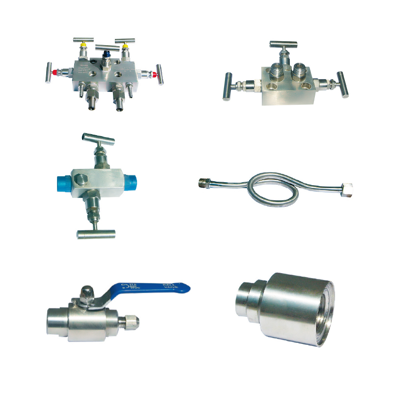 包括一体化五阀组、三阀组,各种二阀组,各种截止阀、球阀,闸阀,各种三通接头,终端接头,各种连接头,安装底座,取样装置,温···